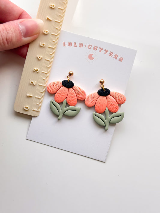 Orange Flower + Stem Earrings