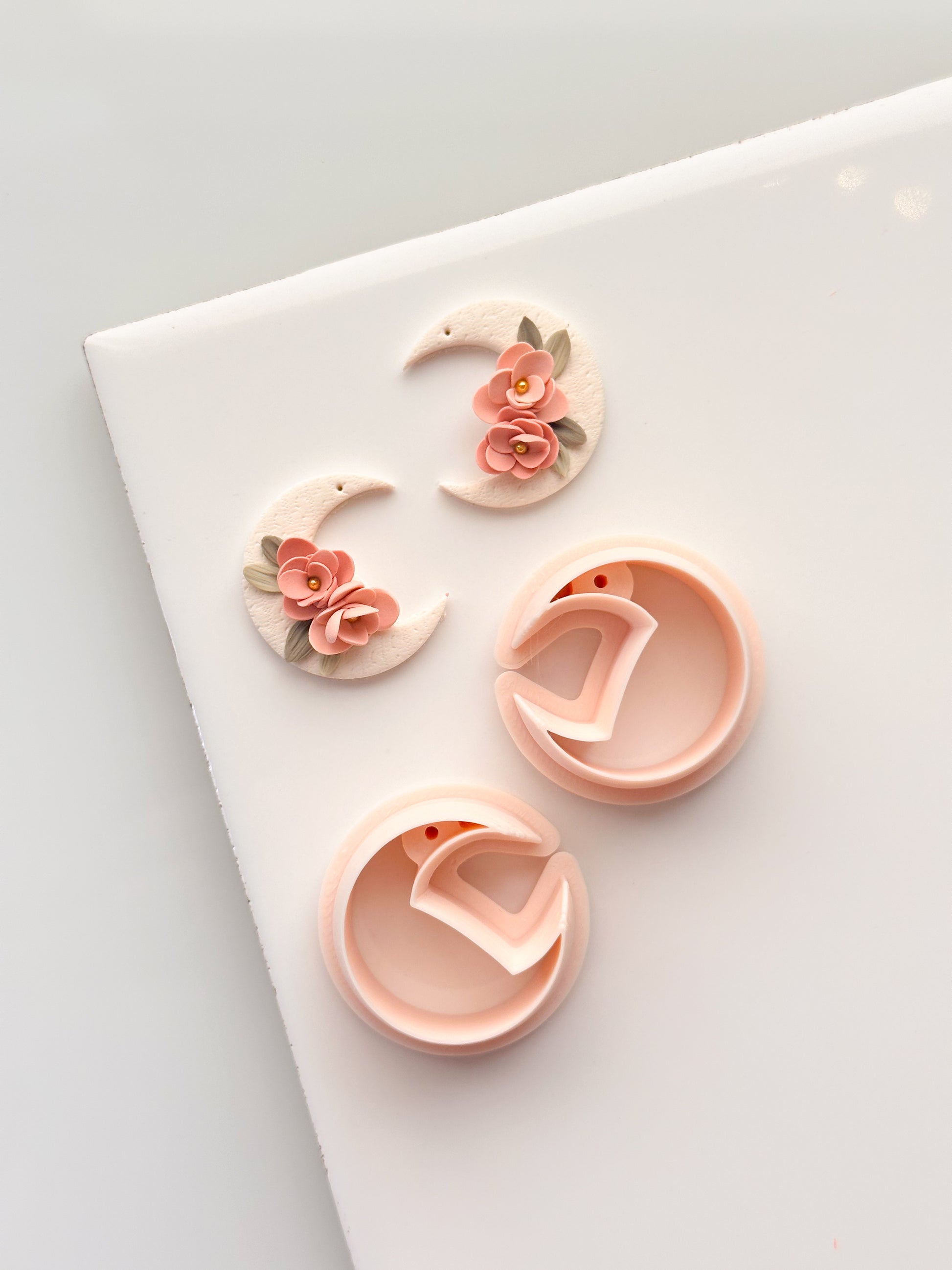 Juego de cortadores de arcilla con forma de luna y flores con espejo