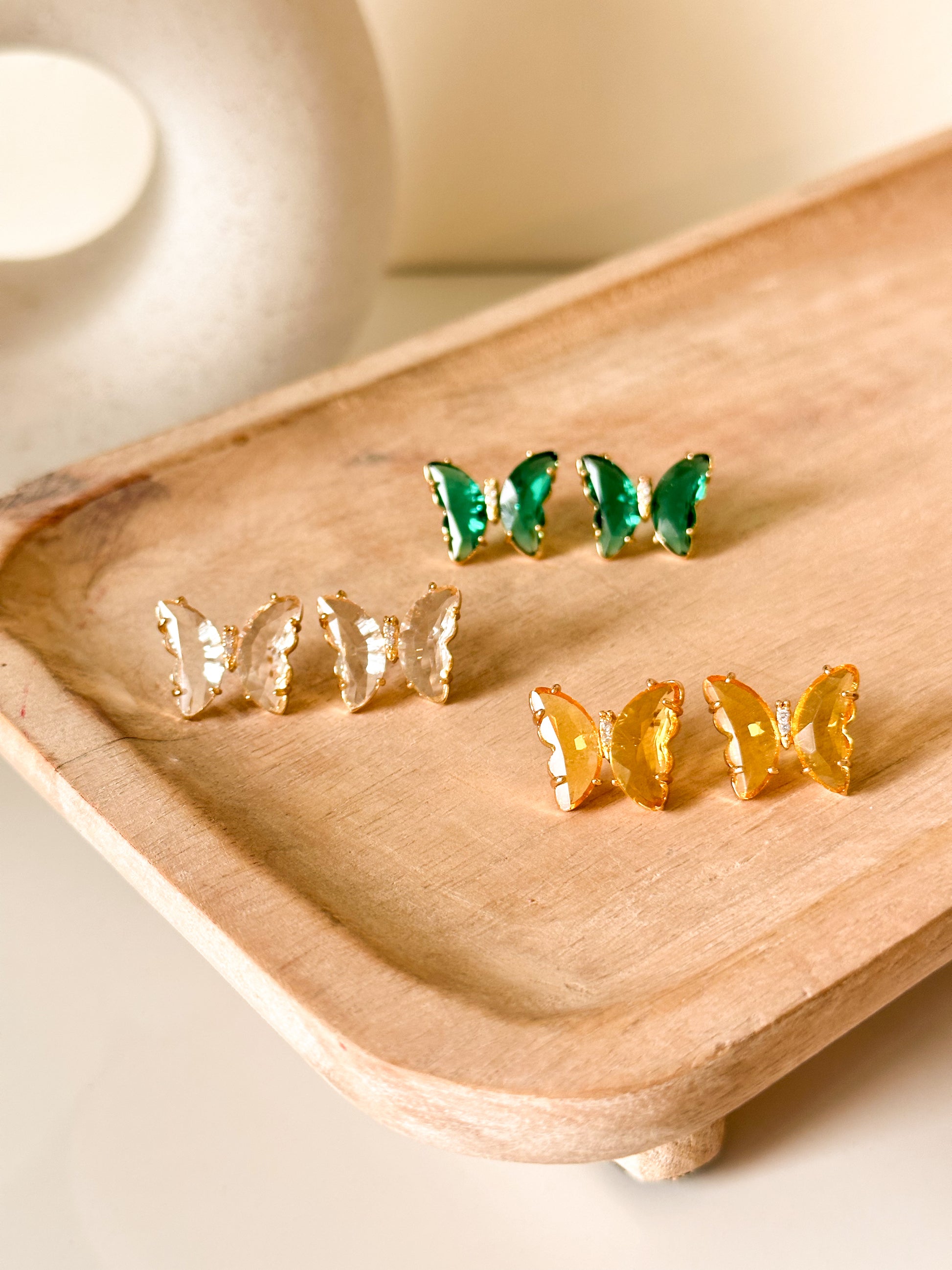 Clous d'oreilles papillon en zircon - 2 pièces